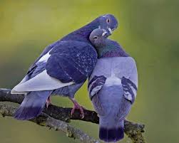 Sepasang merpati bahu membahu mengumpulkan bijian untuk
